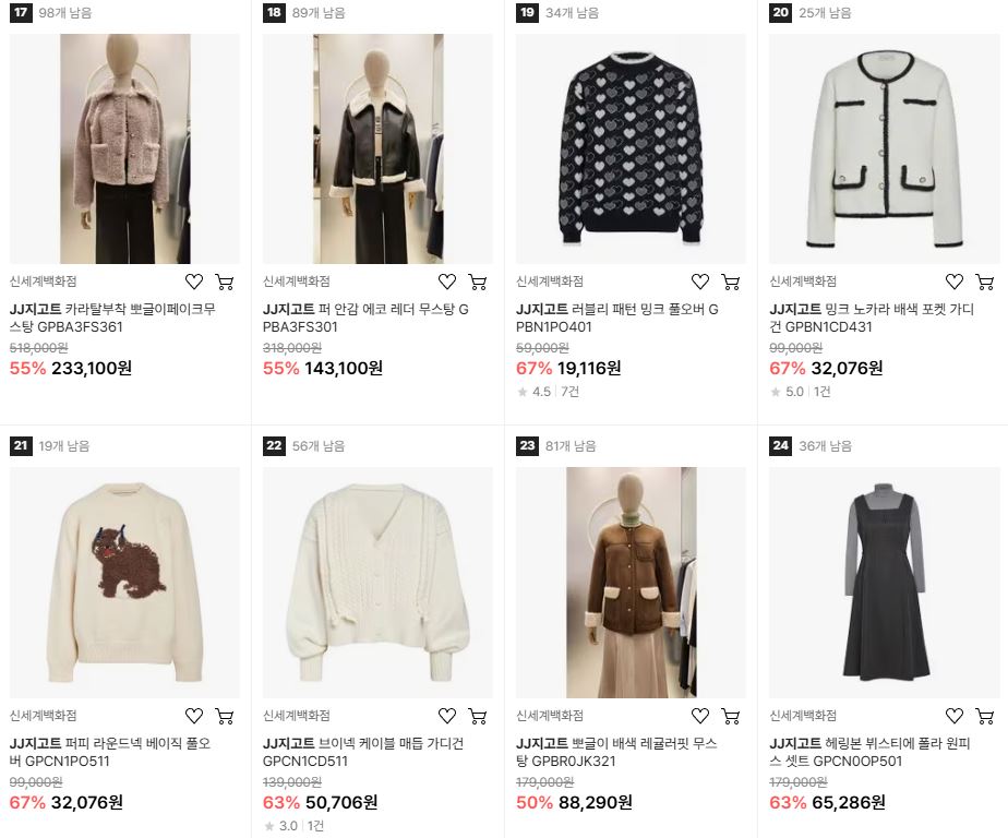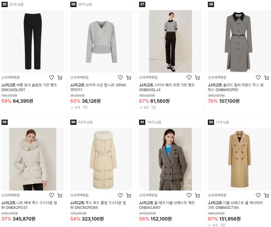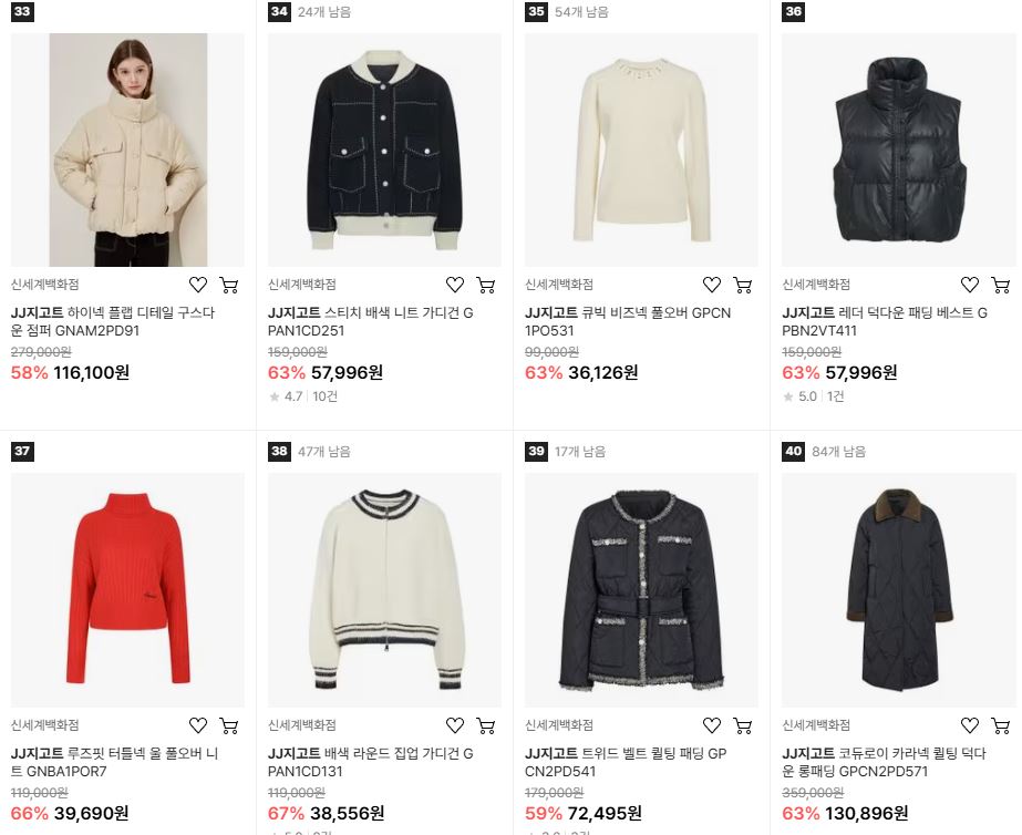 JJ지고트 다양한 제품을 할인 판매하네요.