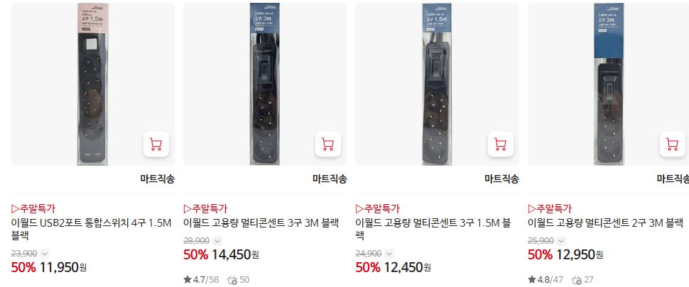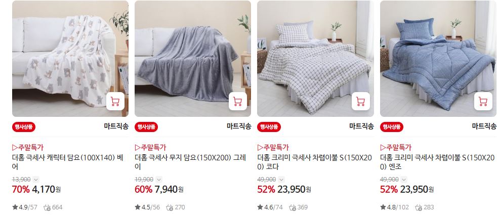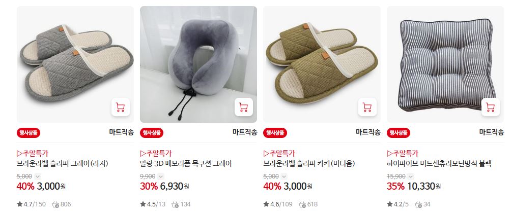 할인 품목 : 슬리퍼, 이불, 멀티탭 등