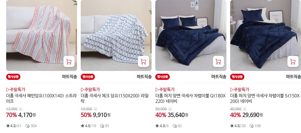 할인 품목 : 슬리퍼, 이불, 멀티탭 등