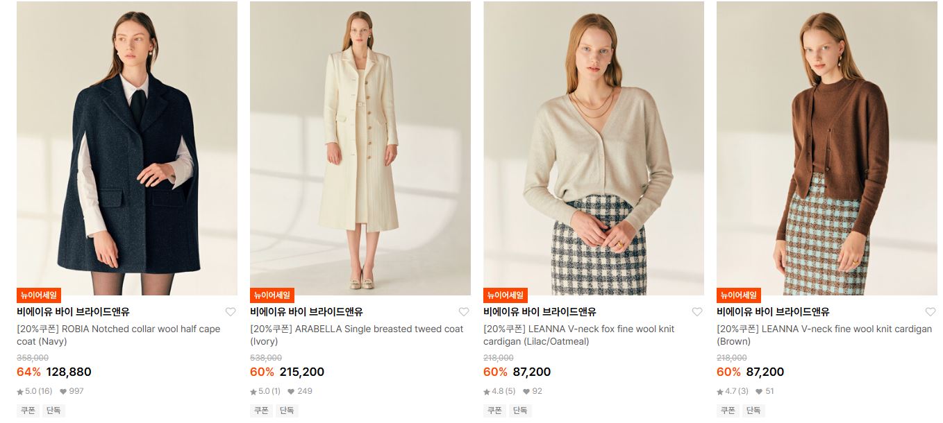 비에이유 바이 브라이드앤유 최대 64% 세일 정보 [링크]