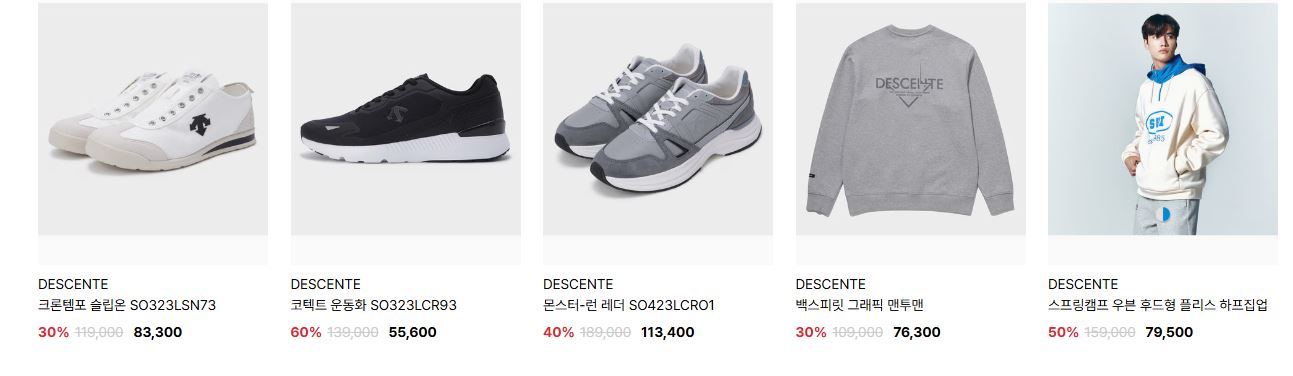 데상트 다양한 제품을 할인 판매하네요.