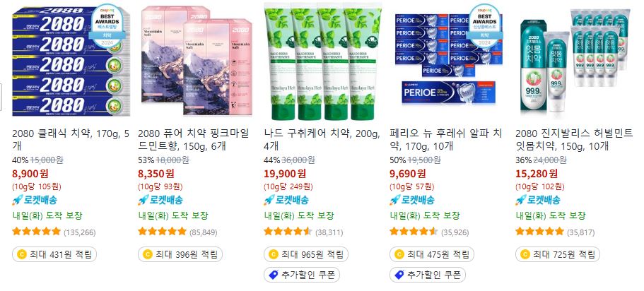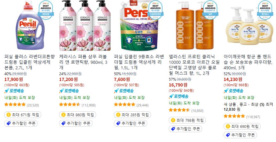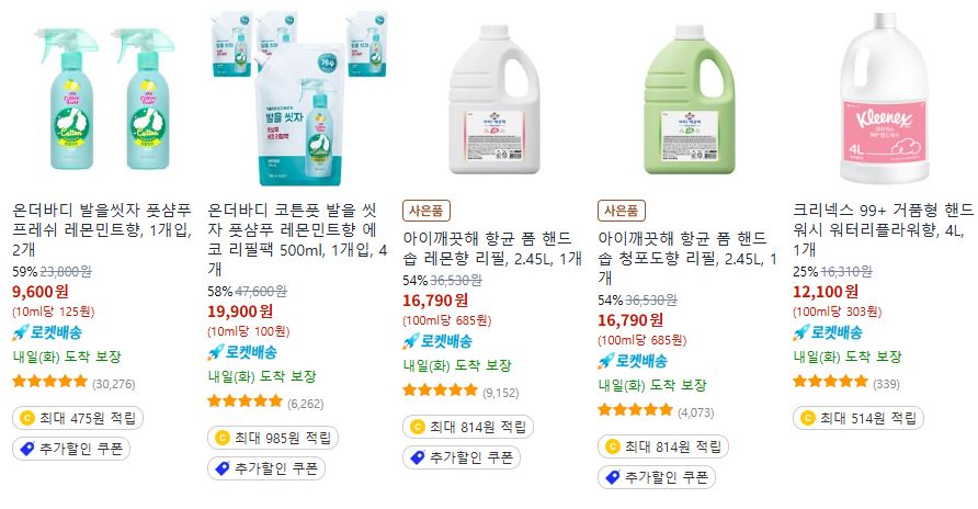 할인 품목 : 샴푸, 바디워시, 세재, 치약 등