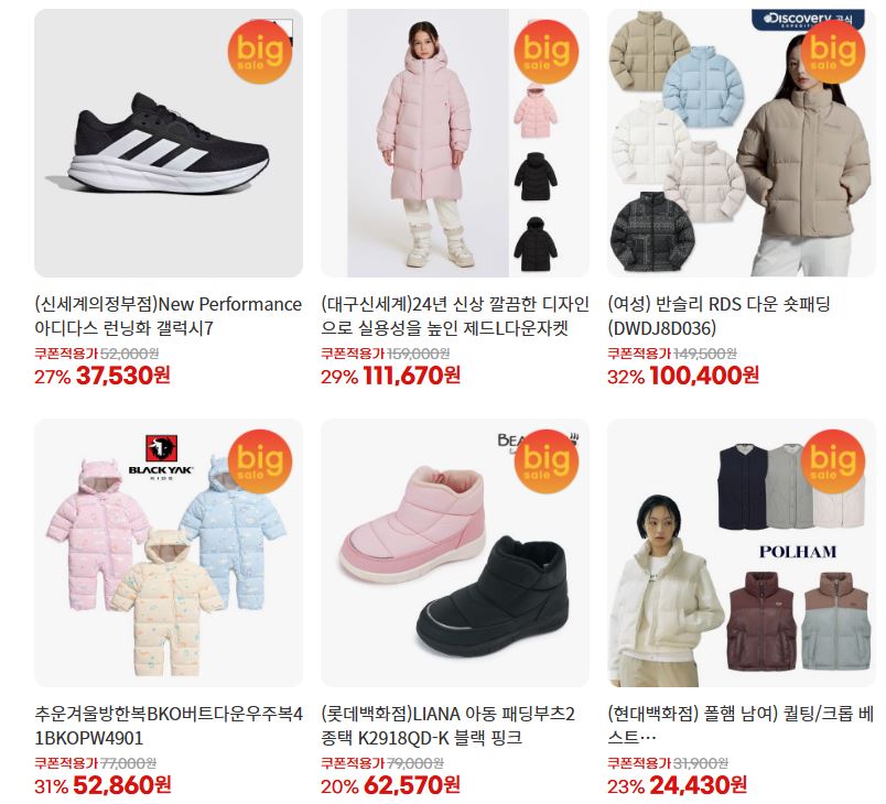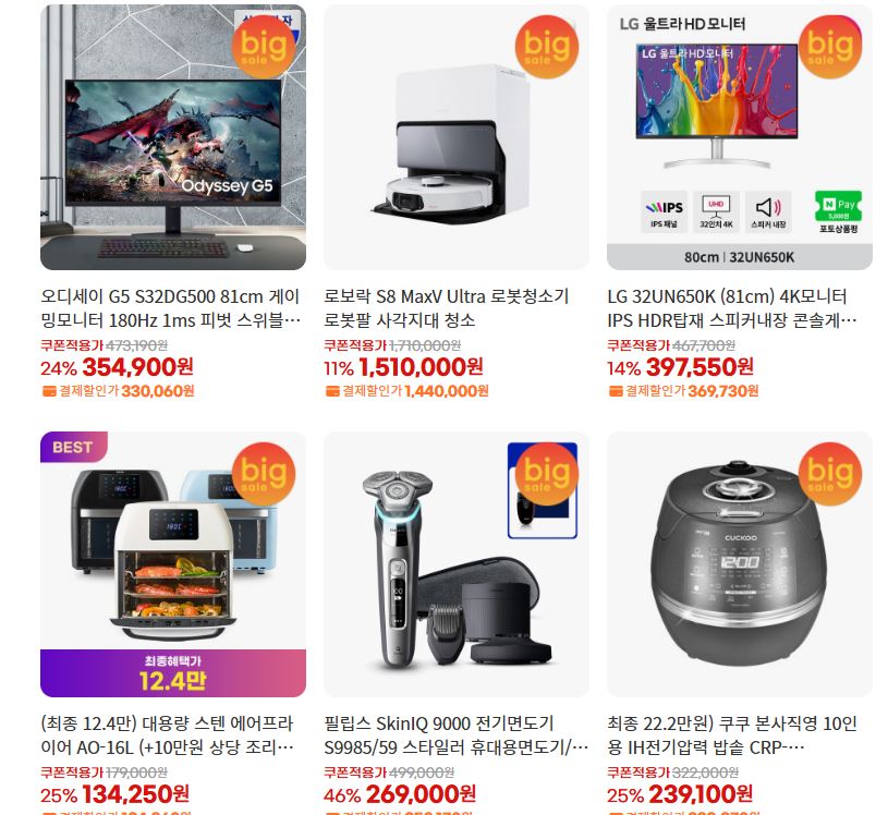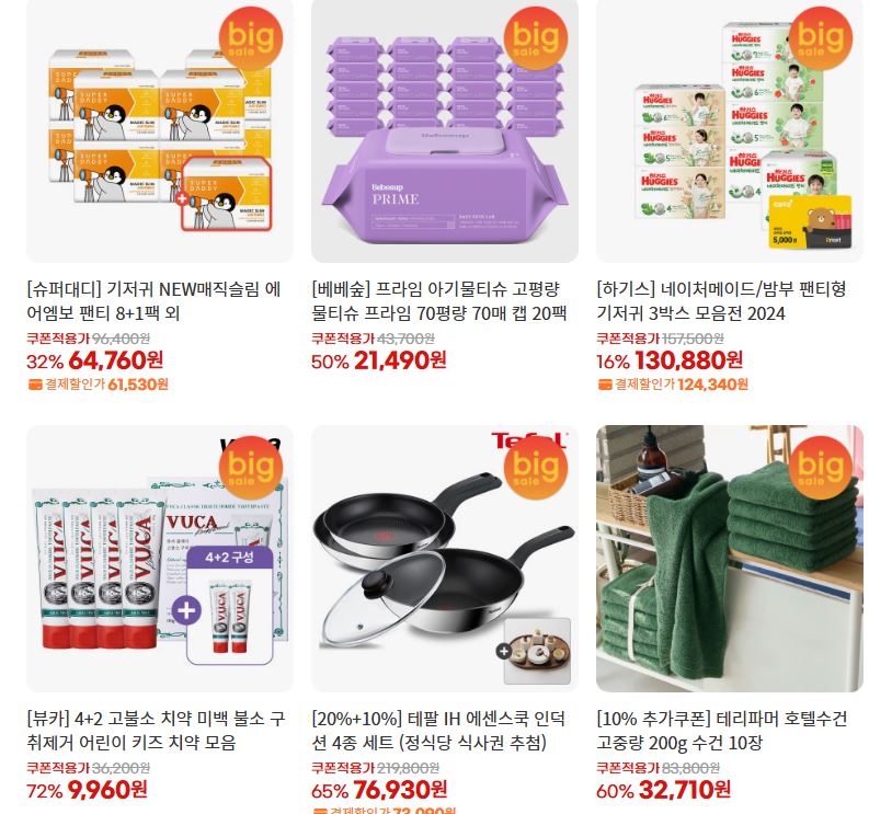 할인 품목 : 가전, 생활용품, 식품 등