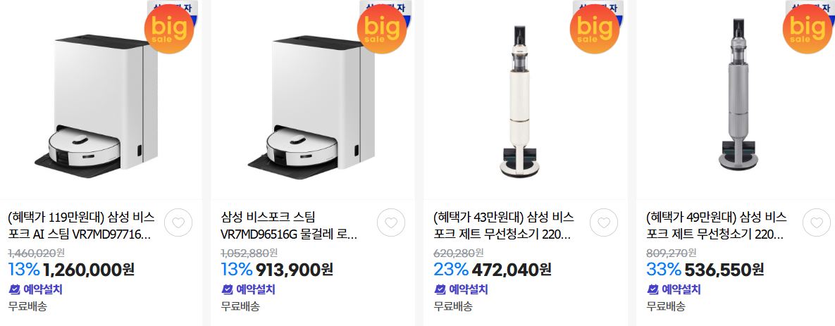 할인 품목 : 티비, 로봇청소기, 모니터, 휴대폰 등