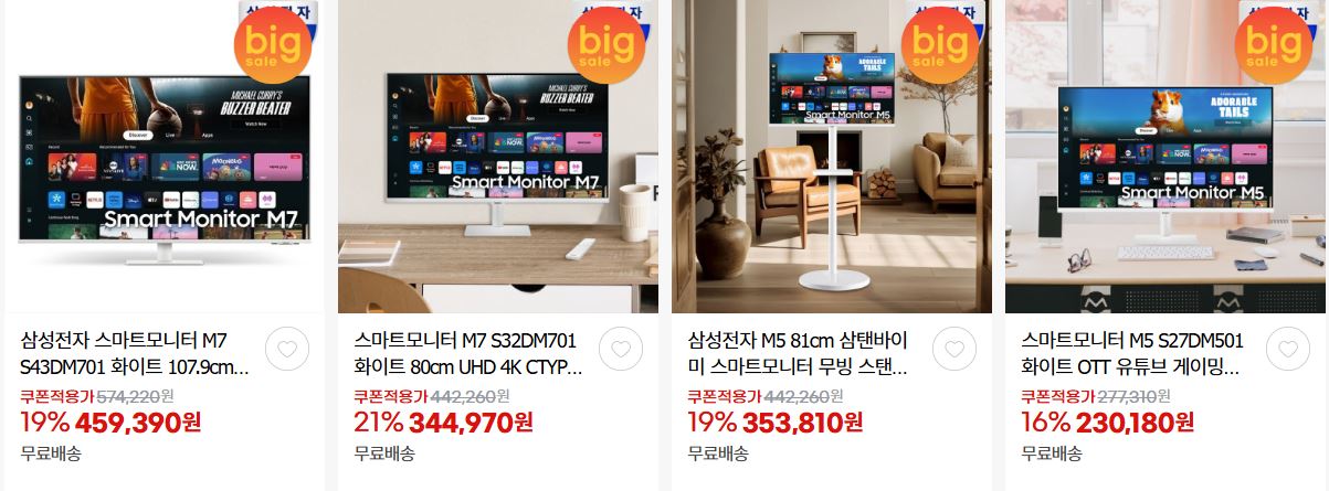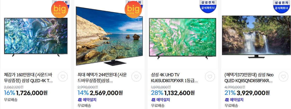 할인 품목 : 티비, 로봇청소기, 모니터, 휴대폰 등