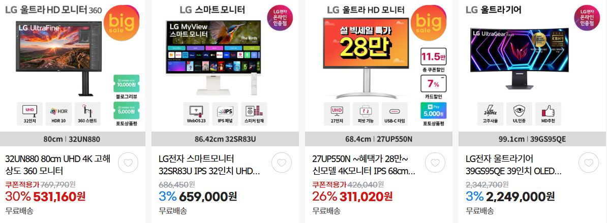 할인 품목 : 모니터, 냉장고, 노트북 등