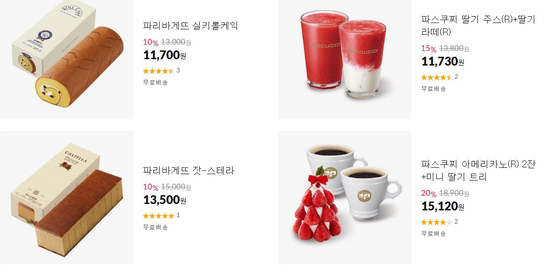 할인 브랜드 : 파스쿠찌, 파리바게뜨, CGV 등