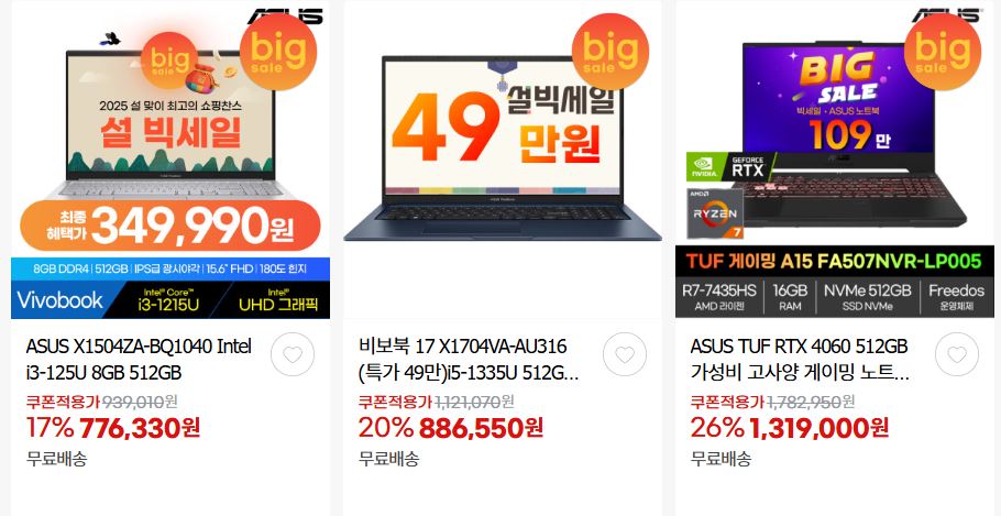 | ASUS X1504ZA-BQ1040 Intel i3-125U 8GB 512GB 할인 (0) | 2025.01.07 |