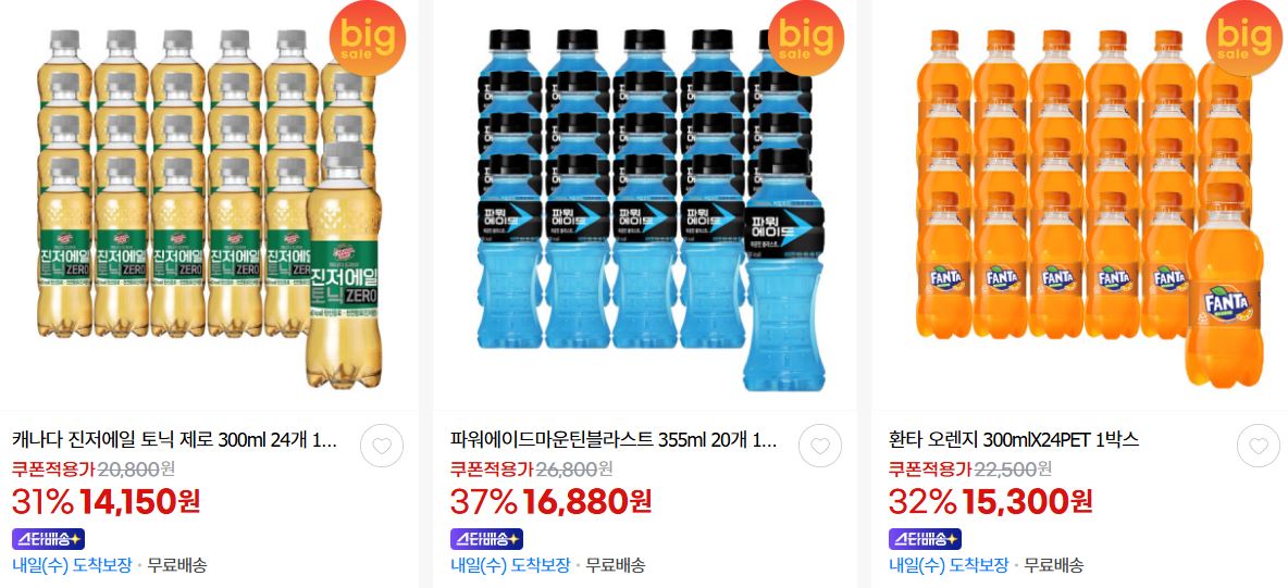 할인 품목 : 코카콜라, 토닉워터, 조지아, 환타 등