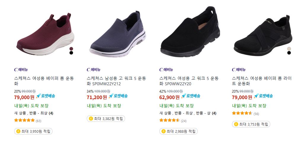 스케쳐스 다양한 제품을 할인 판매하네요.