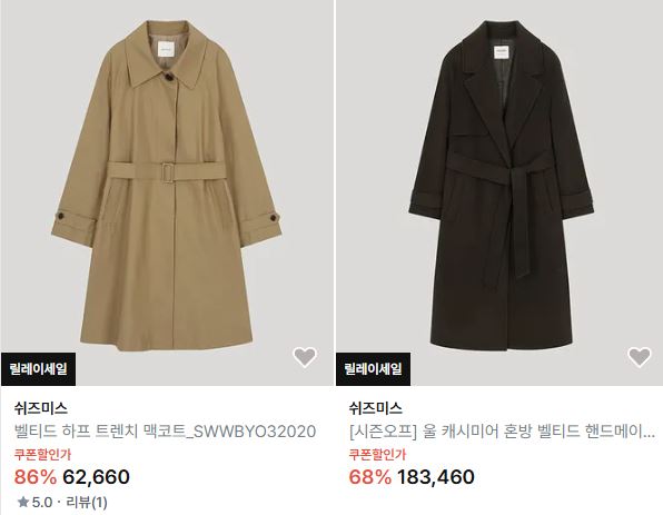 할인 품목 : 코트, 셔츠, 팬츠 등