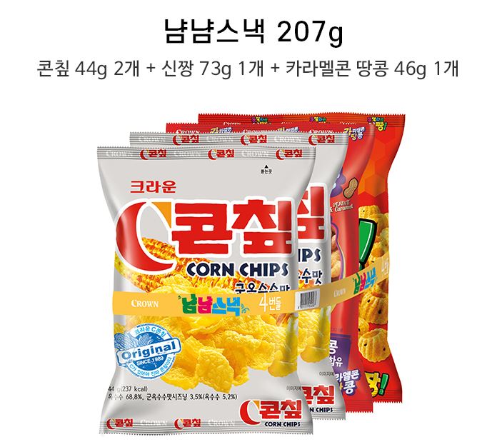 크라운 냠냠스낵 207g x 4팩 할인 정보 [링크]