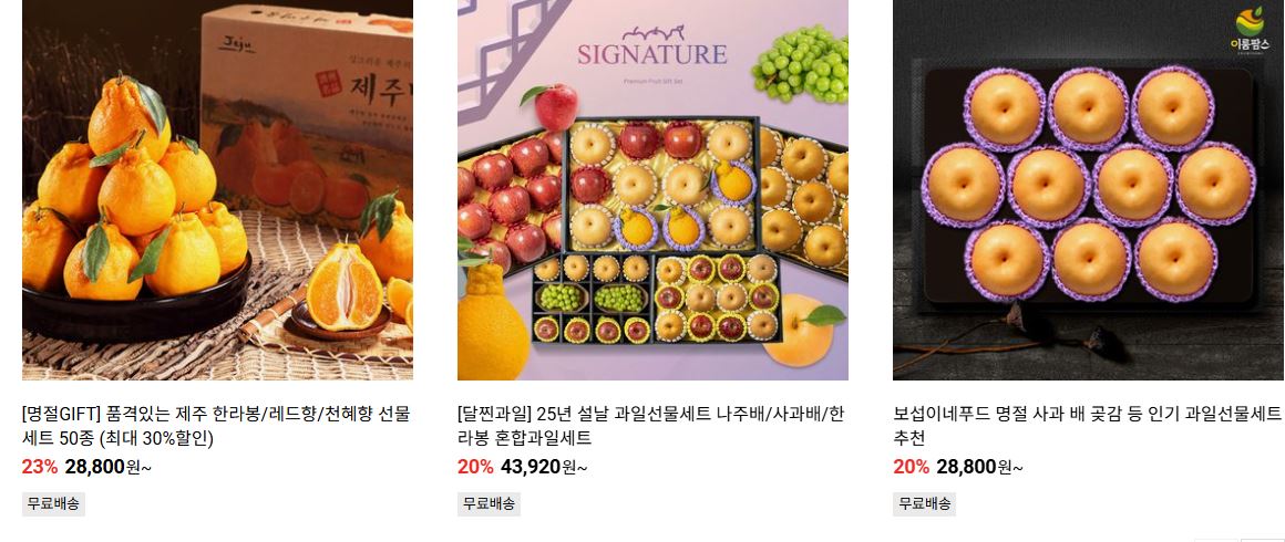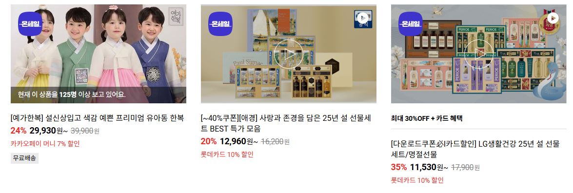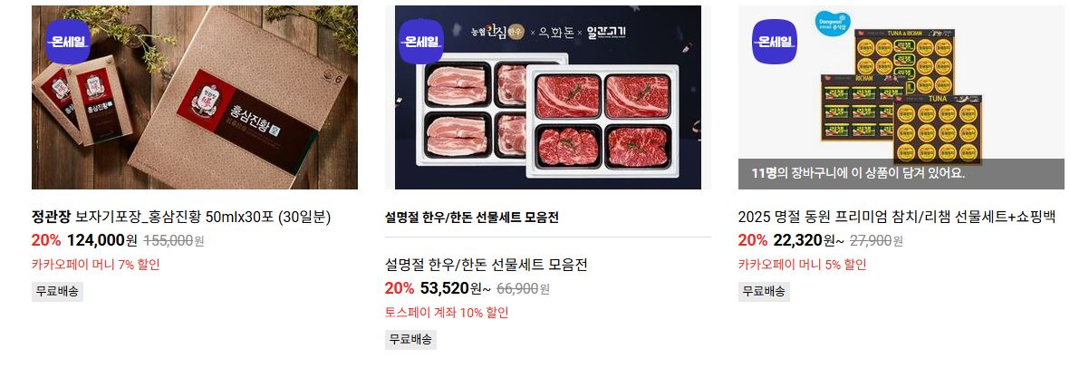 할인 품목 : 선물세트, 가전 등
