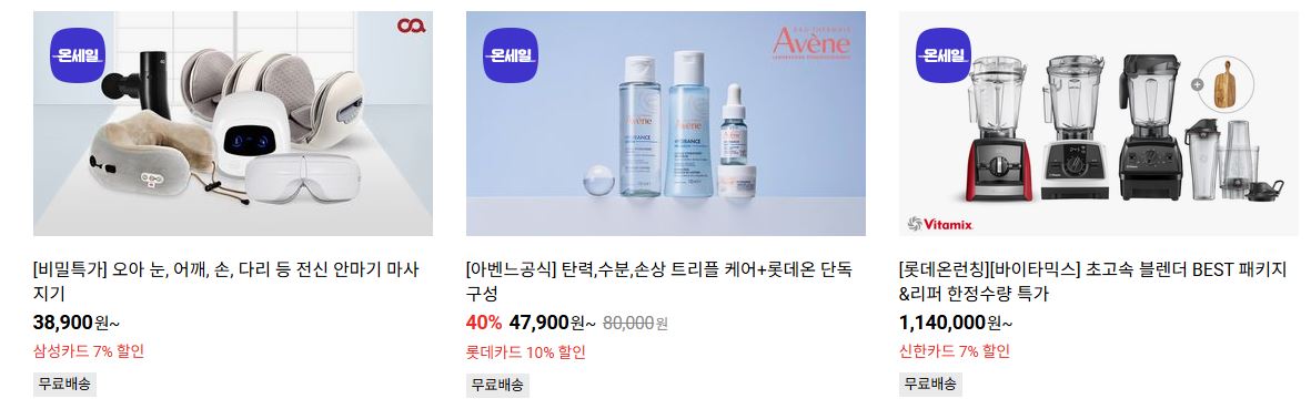 롯데온 다양한 제품을 할인 판매하네요.
