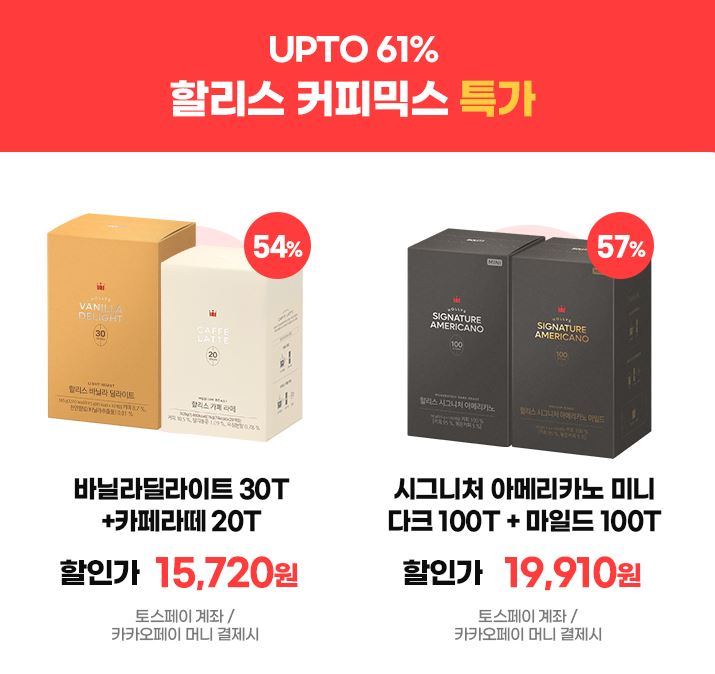 할인 품목 : 커피믹스, 원두 등