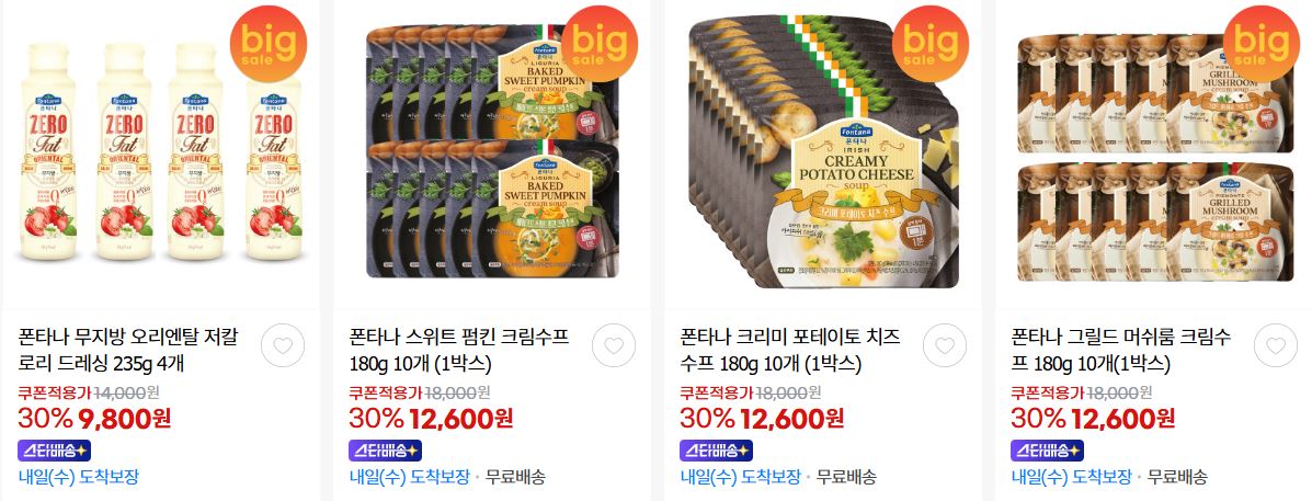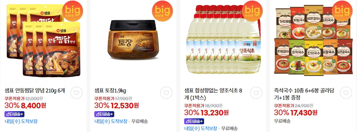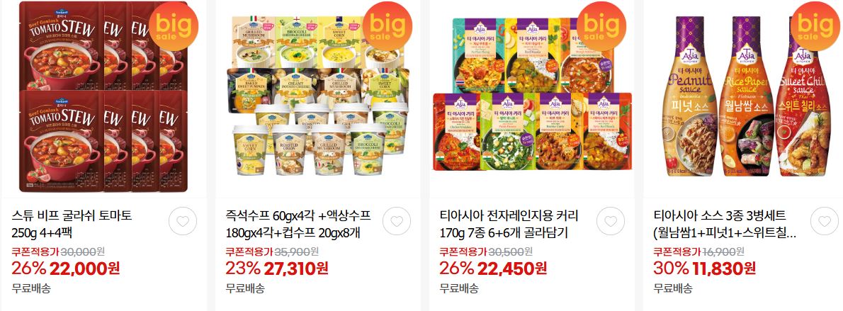 할인 품목 : 육포, 짜장, 파스타소스, 수프 등
