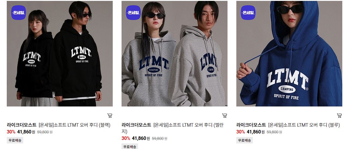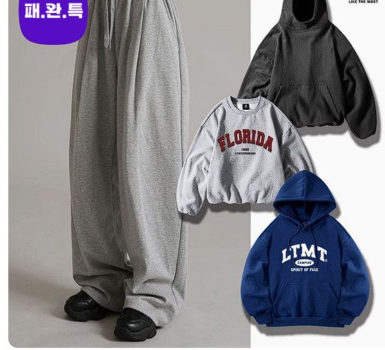 할인 품목 : 후드티, 맨투맨, 팬츠 등