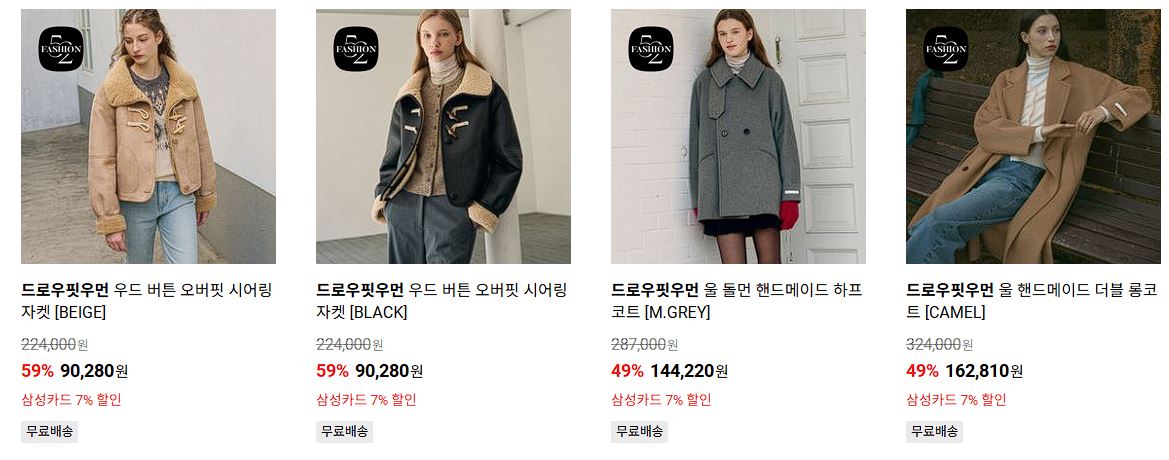 할인 품목 : 코트, 니트, 티셔츠 등