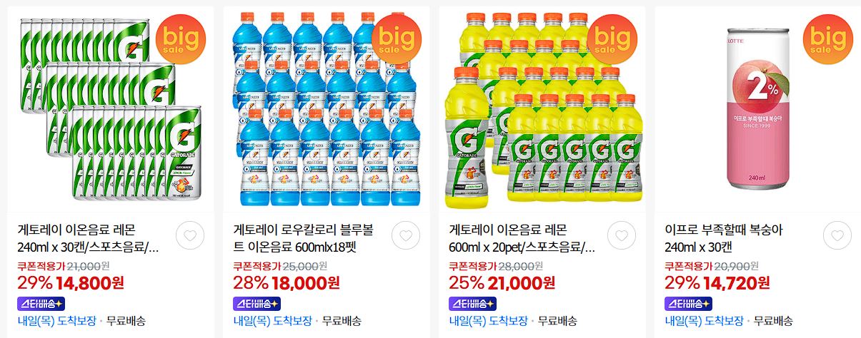 할인 품목 : 펩시콜라, 칠성사이다, 레쓰비 등
