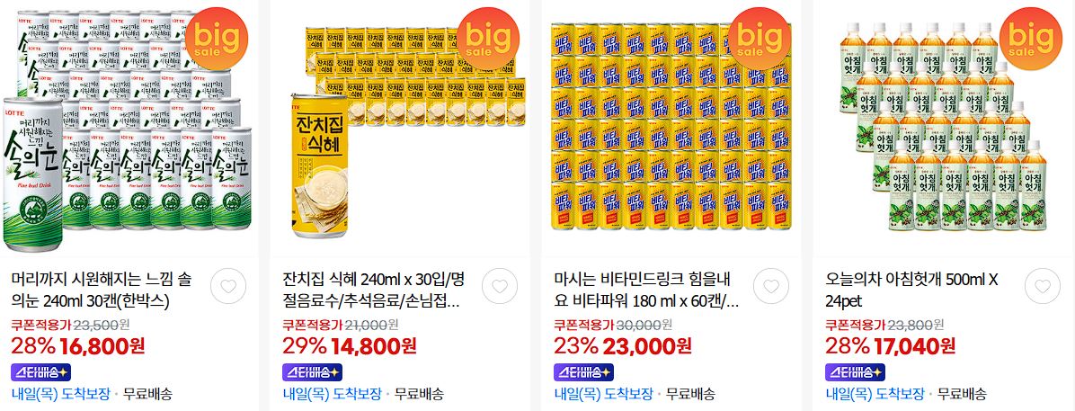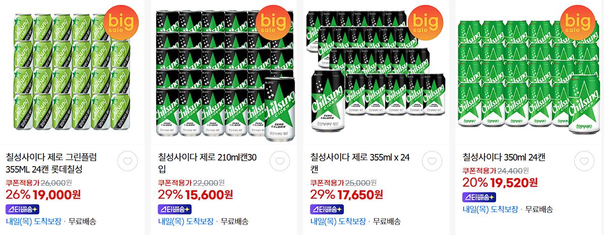 롯데칠성 다양한 제품을 할인 판매하네요.