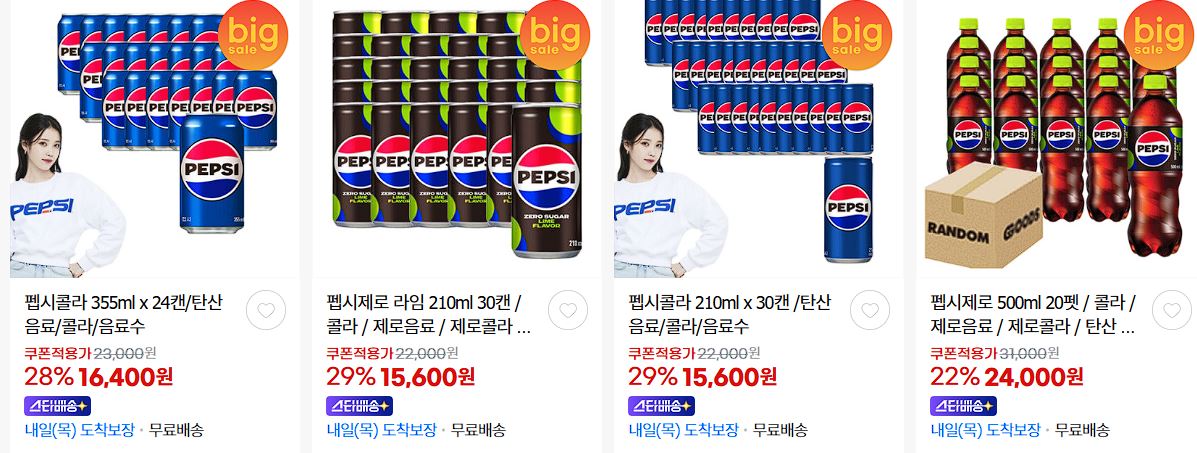 할인 품목 : 펩시콜라, 칠성사이다, 레쓰비 등