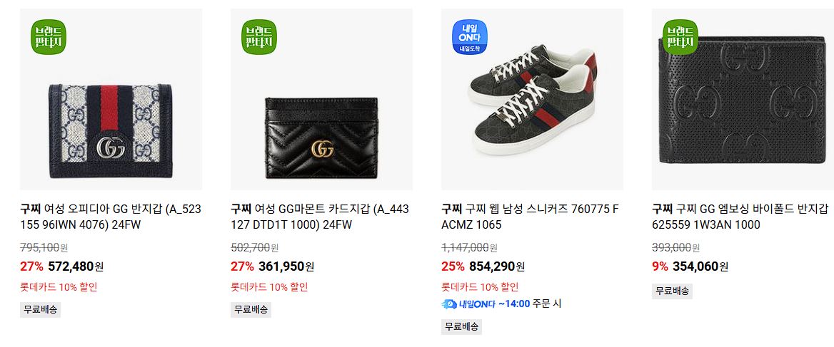 구찌 다양한 제품을 할인 판매하네요.