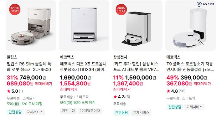 할인 품목 : 노트북, 로봇청소기, 세탁기 등