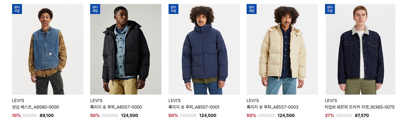 할인 품목 : 팬츠, 점퍼, 티셔츠 등
