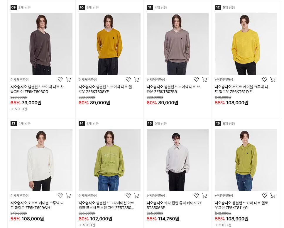 할인 품목 : 니트, 티셔츠, 팬츠 등