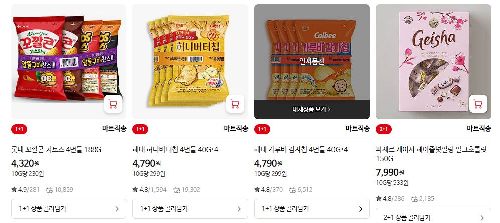 할인 품목 : 칙촉, 에너지바, 음료 등