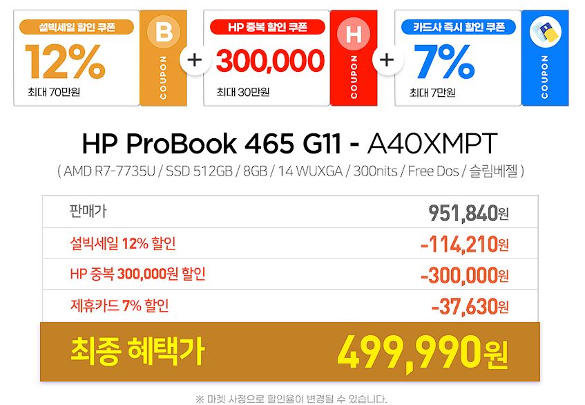 HP ProBook 465 G11-A40XMPT 노트북 할인 정보 포스팅입니다.