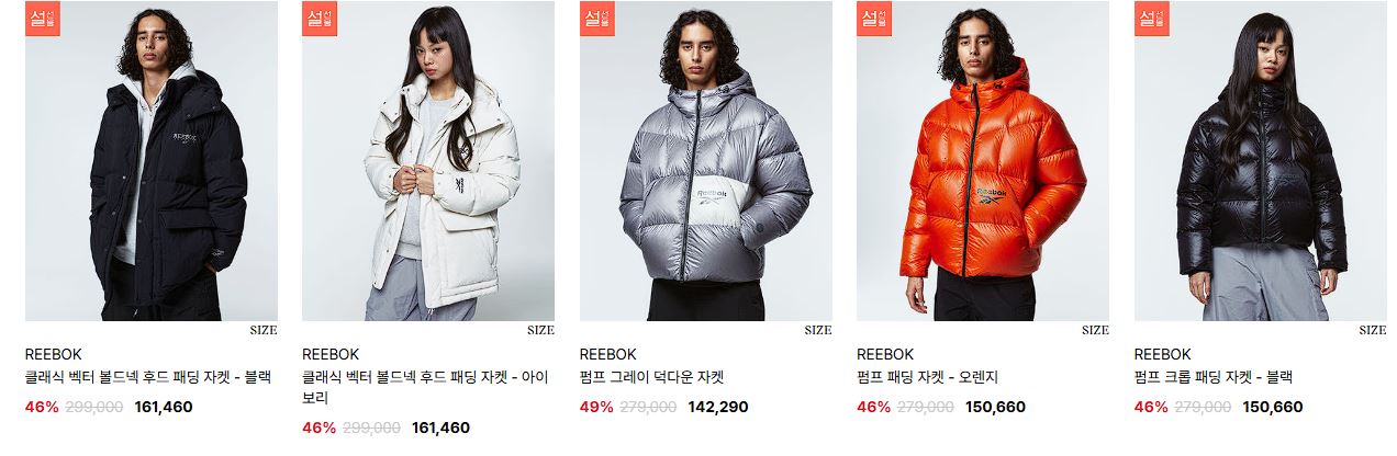 할인 품목 : 점퍼, 맨투맨, 팬츠 등