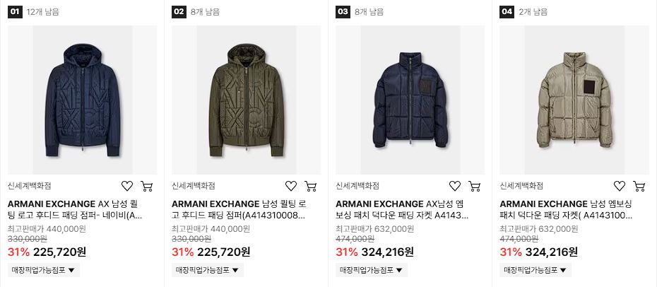 아르마니 익스체인지 다양한 제품을 할인 판매하네요.