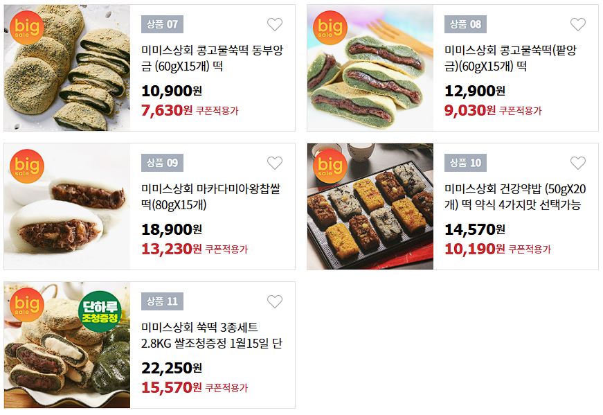할인 품목 : 쑥떡, 인절미, 찹쌀떡 등