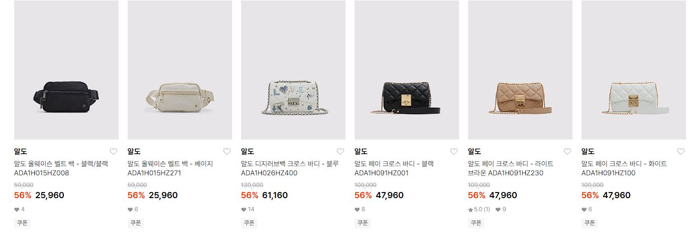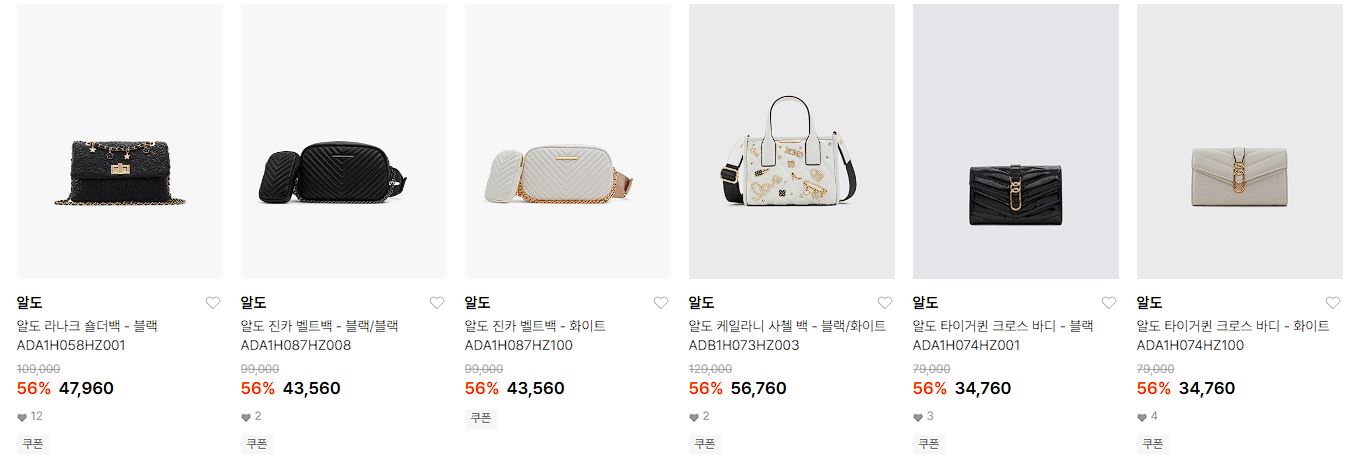 알도 다양한 제품을 할인 판매하네요.