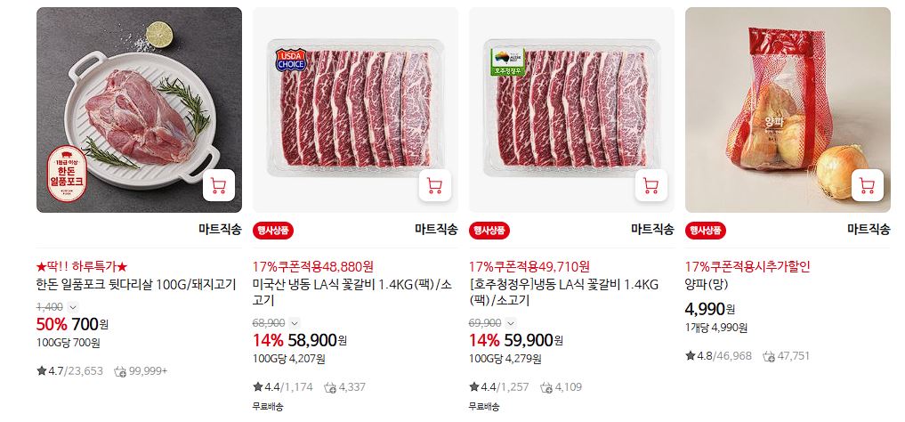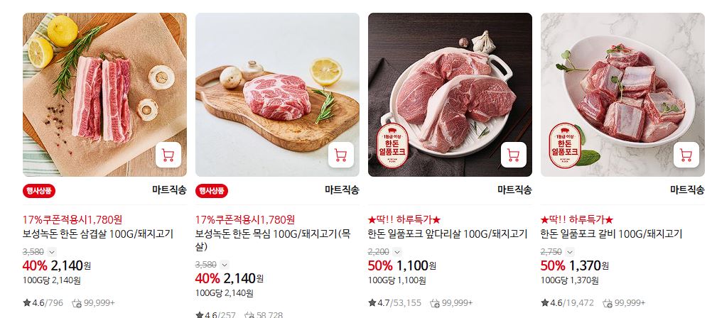 할인 품목 : 삼겹살, 목심 등