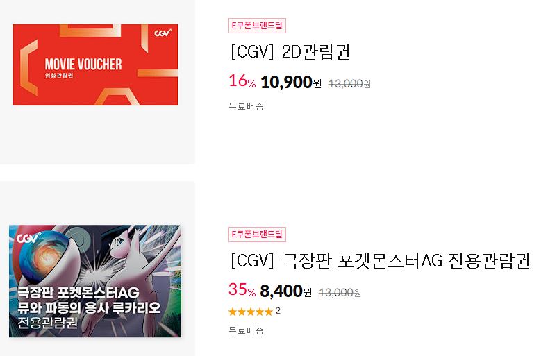 | CGV 영화예매권 33% 할인 (0) | 2025.01.26 |