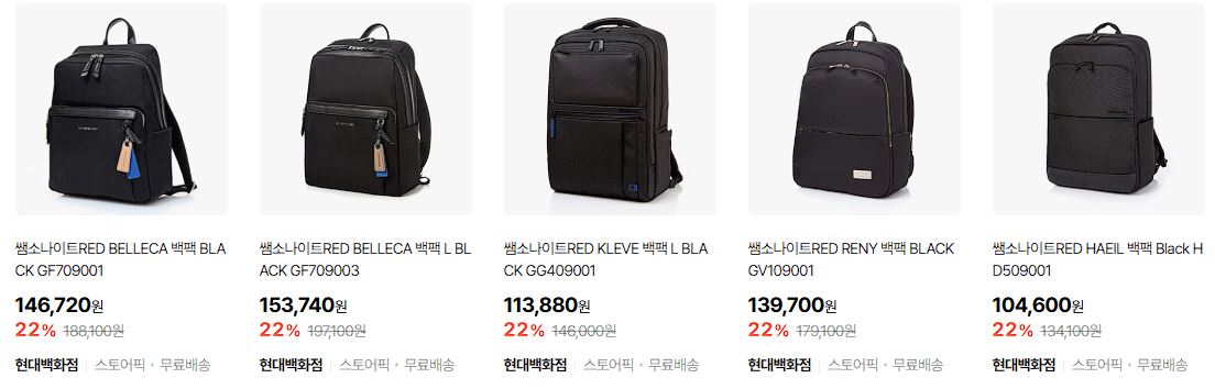 할인 품목 : 백팩, 캐리어, 서류가방 등