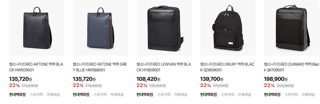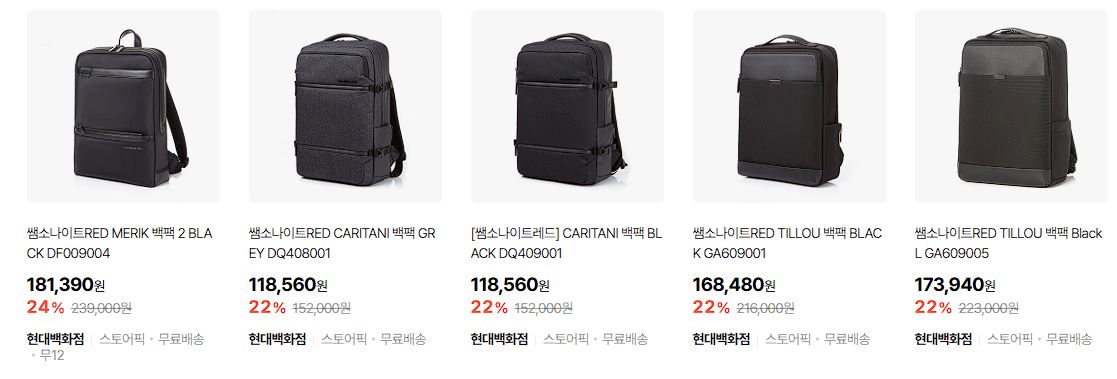 할인 품목 : 백팩, 캐리어, 서류가방 등
