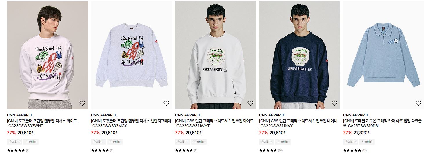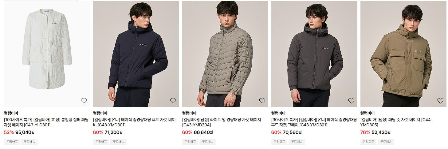 할인 품목 : 코트, 티셔츠, 점퍼, 운동화 등