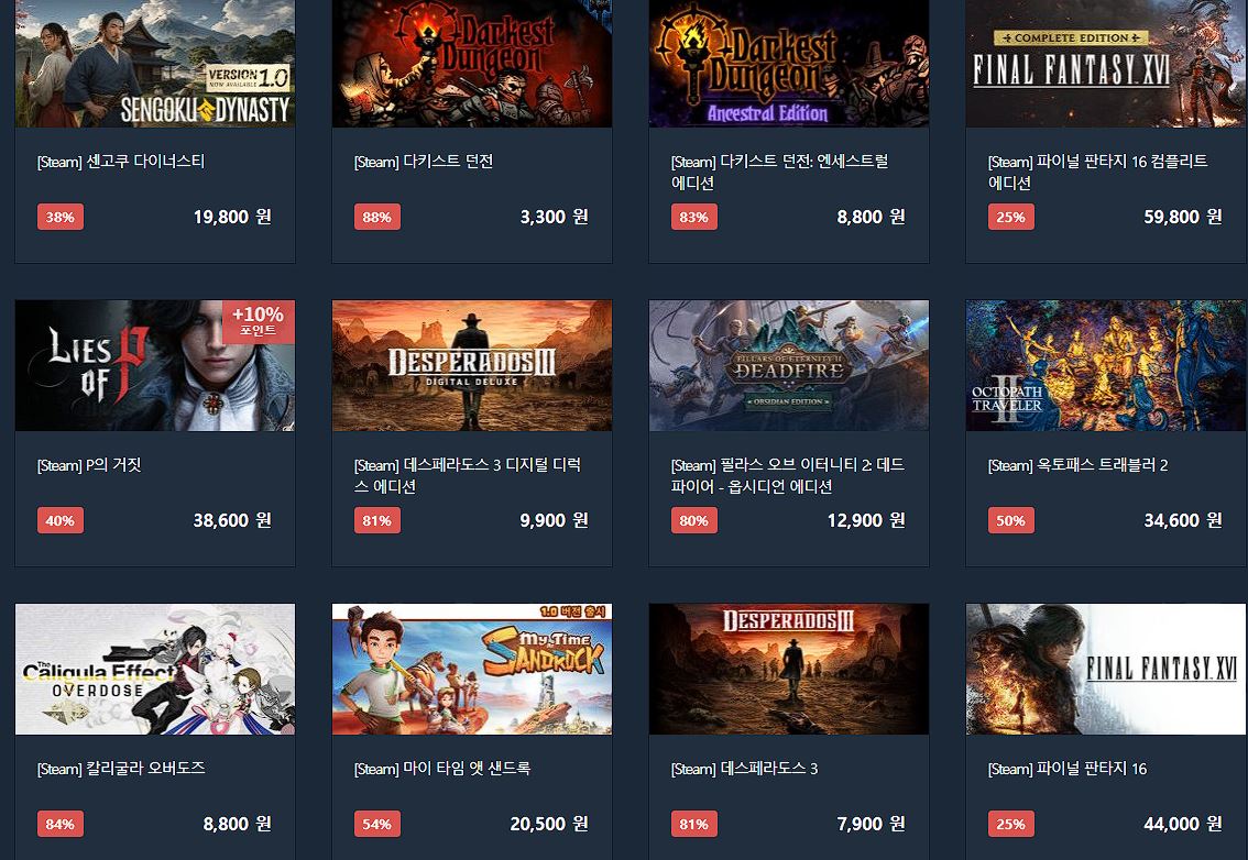 다이렉트게임즈 다양한 게임을 할인 판매하네요.