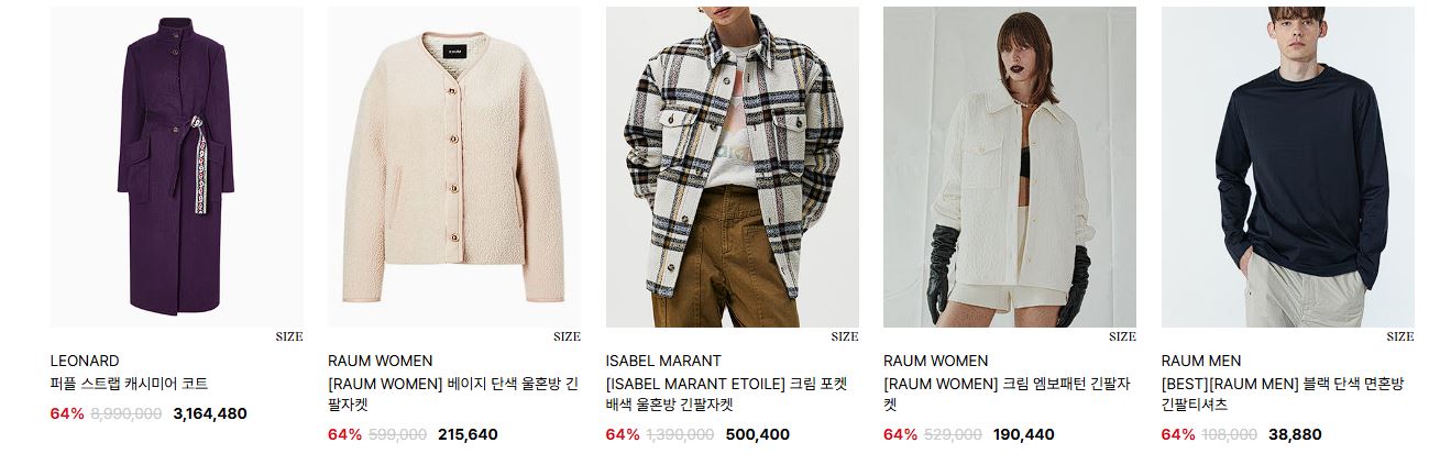 할인 품목 : 자켓, 가디건, 코트, 가방 등