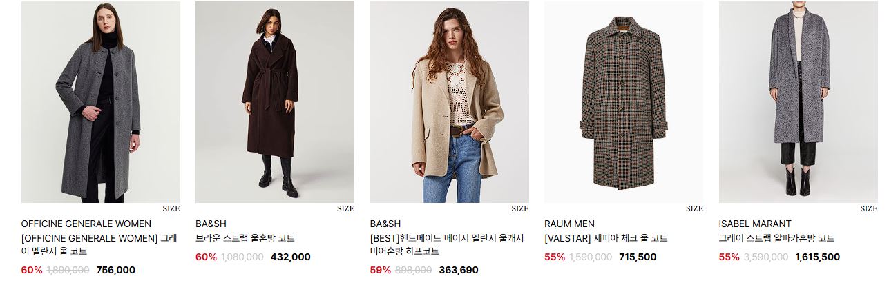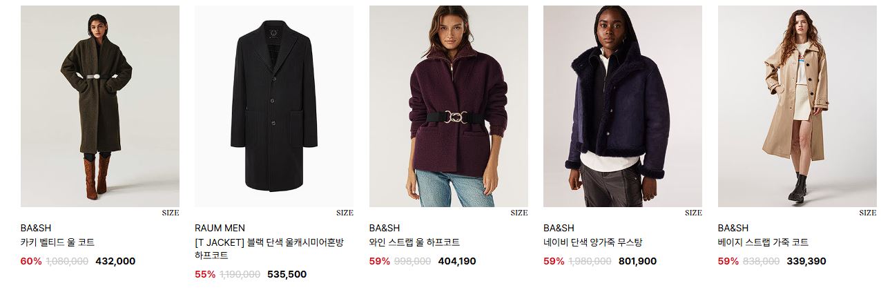할인 품목 : 자켓, 가디건, 코트, 가방 등