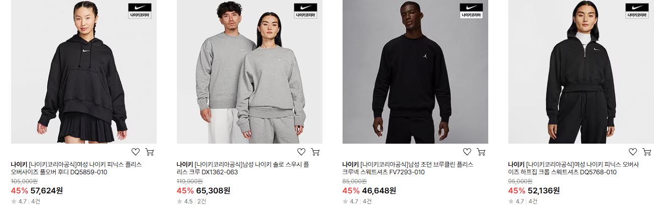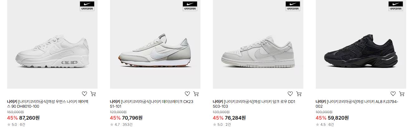 나이키 다양한 제품을 할인 판매하네요.