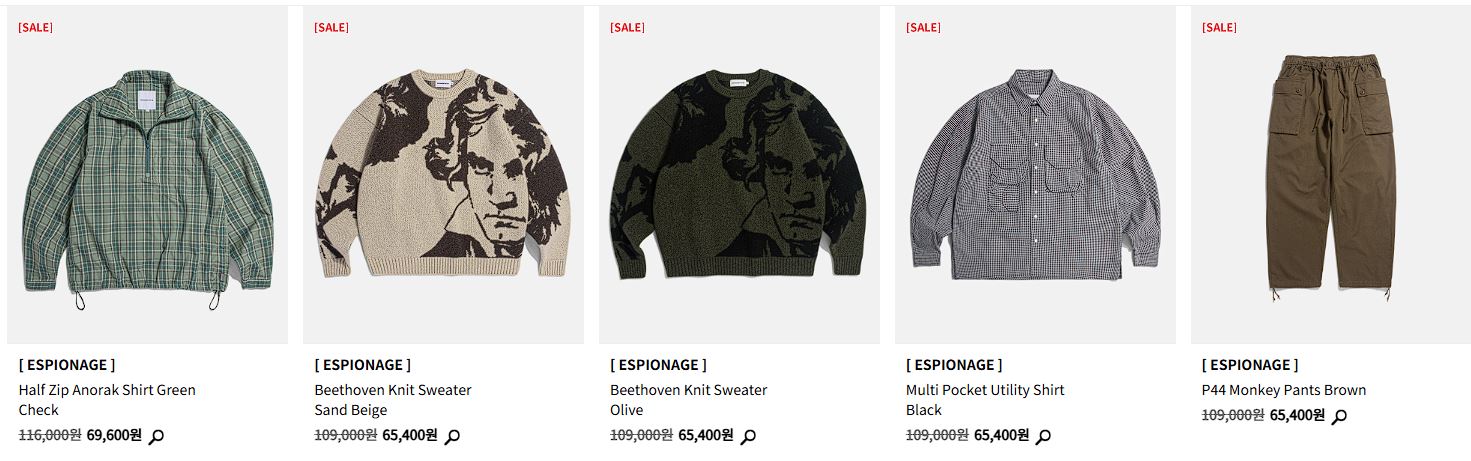 에스피오나지 다양한 제품을 할인 판매하네요.