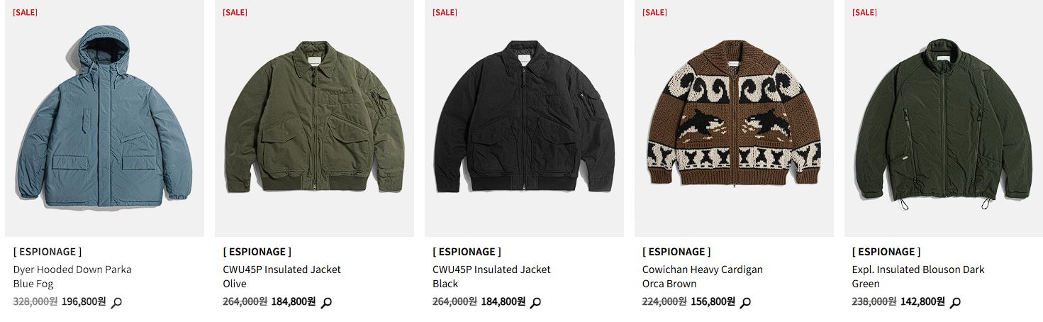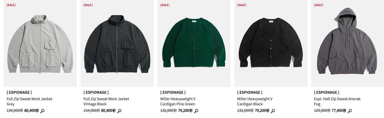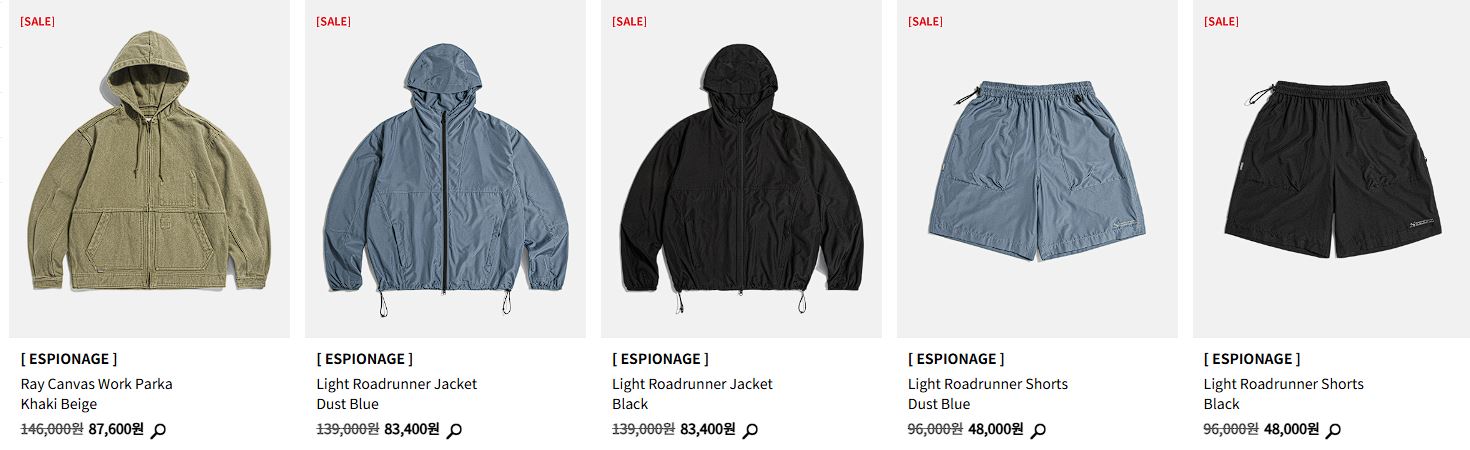 에스피오나지 다양한 제품을 할인 판매하네요.