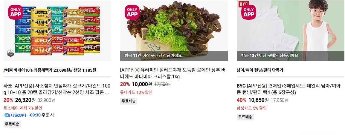 할인 품목 : 라면, 참치, 의류, 가구 등