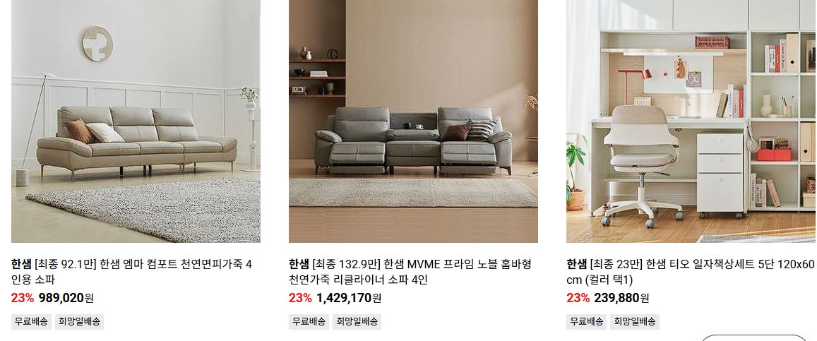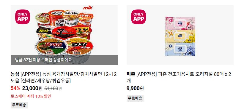 할인 품목 : 라면, 참치, 의류, 가구 등