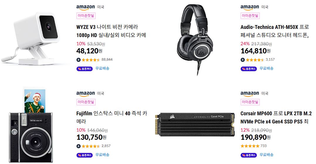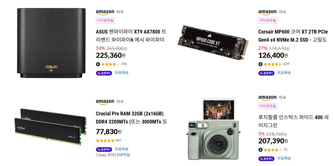 11번가 아마존 다양한 제품을 할인 판매하네요.