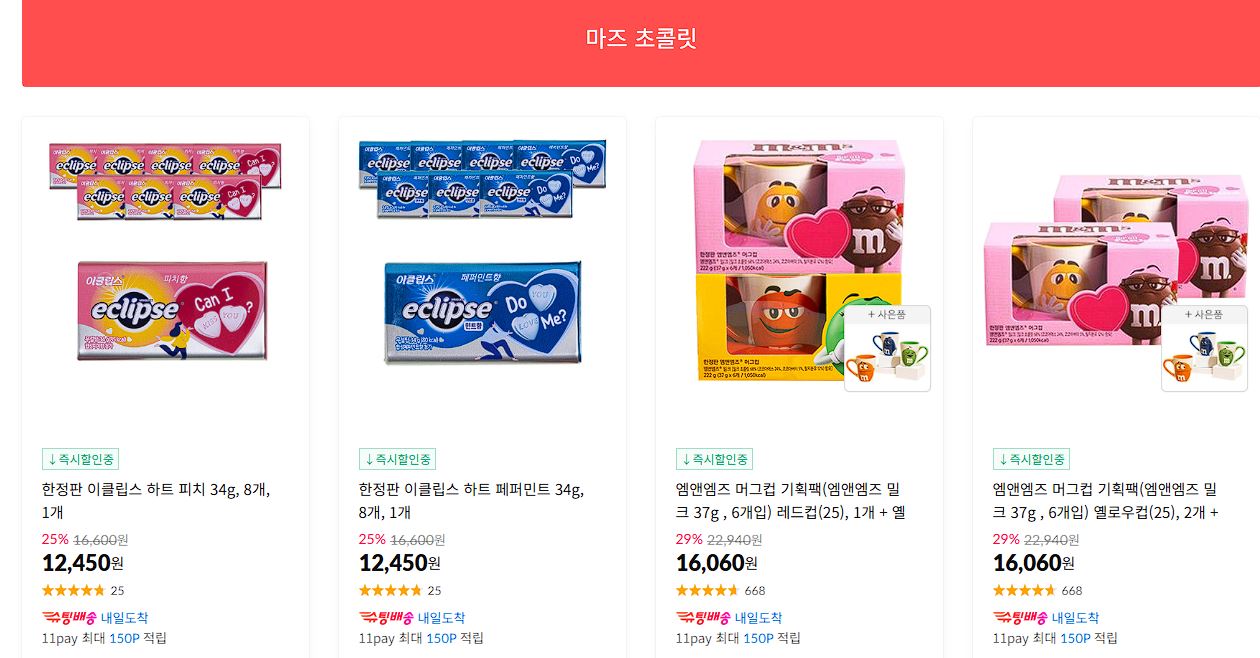 마즈 초콜릿 다양한 제품을 할인 판매하네요.